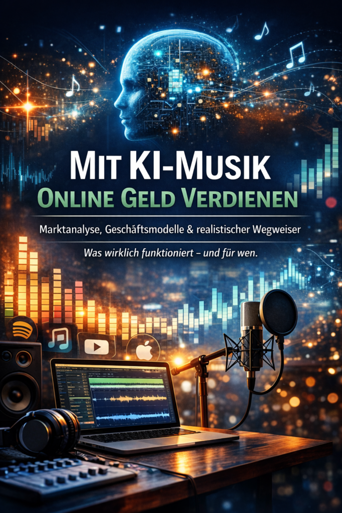 Ein kostenloser Report über 4 moderne Geschäftsmodelle, mit denen Menschen mit Musik, Audio und künstlicher Intelligenz Einnahmen im Internet generieren.