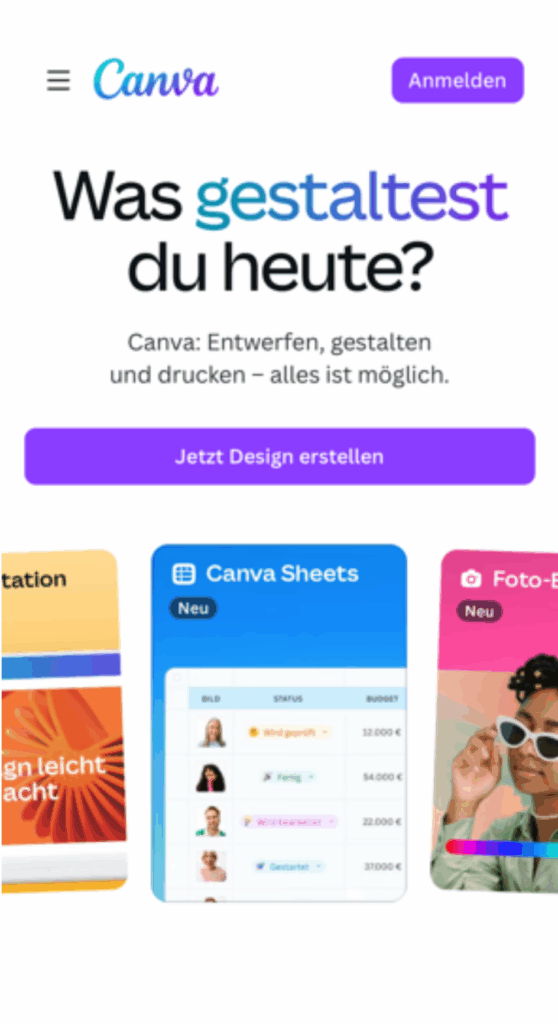 Canva ist eine webbasierte Design-Plattform, die es dir erlaubt, visuelle Inhalte zu erstellen – vom Instagram-Post über Präsentationen bis hin zur kompletten Website.