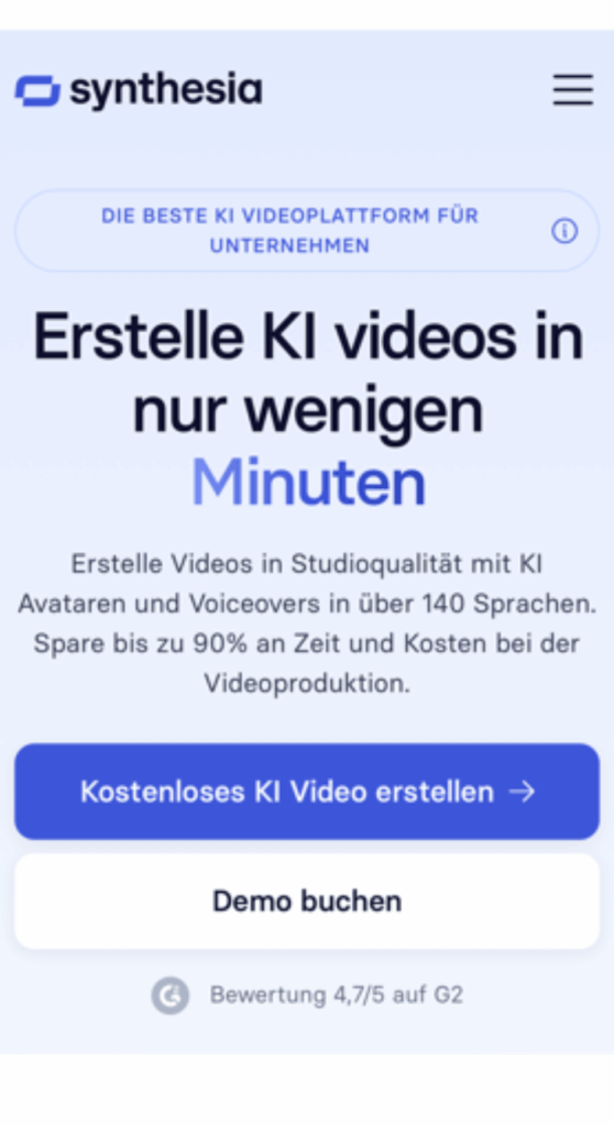 Videos sind heute essenziell – für Social Media, Website, Newsletter. Aber oft heißt das: Kamera, Licht, Schnitt, Renderzeit. Mit Synthesia.io geht’s so: Du schreibst deinen Text, wählst Avatar & Sprache, klickst und hast das Video. Zeitersparnis hoch.