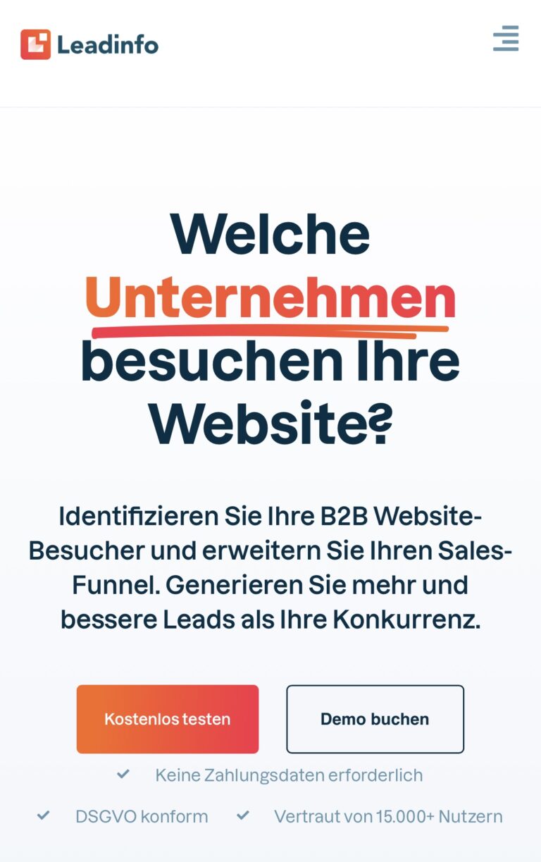 Leadinfoerkennt & identifiziert anonyme Website-Besucher und wandelt sie in qualifizierte B2B-LeadsHier klicken und direkt ansehen